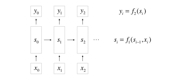 that produce the next state and output are usually neural network layers, hence the name recurrent neural network. In the following sections, we’ll denote (one-layer) neural networks as