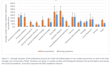 Researchers in this paper found that “Compared to articles published in the same journals before the pandemic, turnaround times have decreased on average by 49%,” as you can see from the results below: